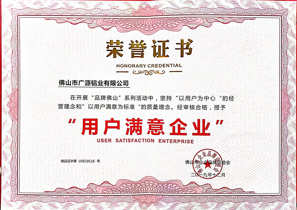 用戶滿意企業(yè) 榮譽證書