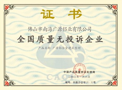 全國質(zhì)量無投訴企業(yè)